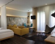 Grand: až čtyřlůžkové pokoje 31m2, koupelna s velkým sprchovým koutem a fénem, sedací nábytek, minibar, trezor, WiFi, župan, papučky a balkon