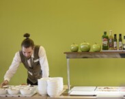 Stravování je hostům hotelu Mjus World Resort poskytováno v hotelové restauraci, snídaně i večeře formou bufetu. Restaurace je otevřena celodenně, včetně baru, který se nachází u restaurace. V letních měsících možnost občerstvení ve venkovním areálu. Další bar se nachází v areálu bowlingu.