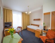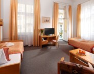 Comfort: 20 – 30 m², vyšší kategorie hotelového pokoje, výhled do klidné lázeňské ulice, některé pokoje mají balkon, koupelna, WC, TV a trezor