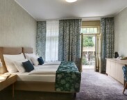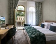 superior: velké pokoje, ideální pro hosty, kteří mají rádi dostatek prostoru, navíc župan s přezůvkami do wellness centra a sada na přípravu kávy, výhled na Mlýnskou kolonádu