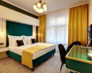 comfort: jednolůžkové nebo dvě samostatná lůžka o rozměrech 90 x 200 cm umístěná u sebe nebo odděleně, nekuřácké, bezplatné WiFi připojení, LED televizor se satelitním příjmem, chladnička, telefon, rádio, koupelna se sprchou či vanou a toaletou, trezor přímo v pokoji nebo případně v recepci hotelu, kartový zámkový systém