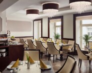 Hotel Saxonia má vlastní restauraci, která nabízí snídaně podávané v italském stylu formou bufetu.