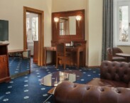 Apartmá deluxe: 55 m², výhled na město nebo kostel, úložný prostor, rychlovarný set, minibar, TV, trezor, Wifi, koupelna s vanou, fén a župan. Oddělené místnosti a balkón.