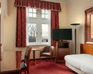 Jednolůžkový comfort: 19 – 21 m², výhled do města nebo do lesoparku, minibar, TV, trezor, Wifi, koupelna se sprchou, fén a župan
