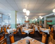 Snídaně, obědy i večeře jsou podávány formou bufetu, možnost dietní stravy. Hotelová kavárna s letní terasou.