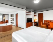 - Možnost pobytu s domácím zvířetem pouze v pravém křídle hotelu za poplatek 25 EUR / noc. Nutno objednat předem, počet těchto vyhrazených pokojů je omezený.