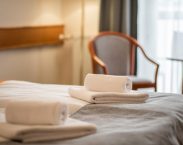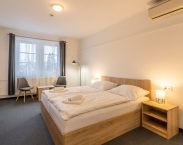 Hotel nabízí ubytování ve dvoulůžkových pokojích s možností přistýlky, které jsou vybaveny koupelnou a WC, TV, telefonem, připojením Wi-Fi, klimatizací, fénem, županem a minibarem. Hotel je nekuřácký, kouření je povoleno pouze na vyhrazených místech. Hotel má dva bezbariérové pokoje. Ubytování v den nástupu od 15 hod, uvolnění pokoje v den odjezdu do 10 hod.