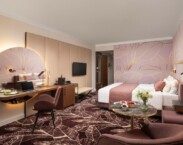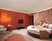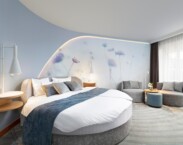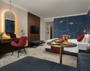Grand gold: kromě manželského dvoulůžka navíc speciální koutek s postelí 160×200 cm pro až 2 děti nebo 1 dospělého, koupelna a WC, LCD TV, minibar, telefonem, bezplatným WiFi připojením k internetu, trezorem, fénem, županem, balkonem a klimatizací, oválná postel o průměru 230 cm, 33–35 m².
