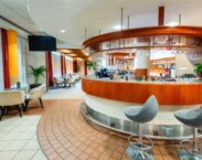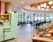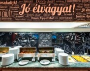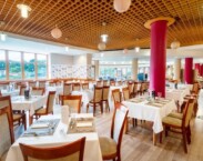 Hotelová restaurace nabízí pokrmy maďarské a mezinárodní kuchyně, snídaně i večeře formou bufetu. V létě probíhá grilování na terase a je k dispozici bar u bazénu. Loby bar hostům nabízí široký výběr káv a nápojů.