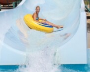 Aquapark se nachází na pláži, pro vstup je vyžadována zvláštní vstupenka. Návštěvníkům starším 12 let nabízí 9 typů obřích skluzavek (čtyřdráhová závodní skluzavka, kamikadze, tobogán, „černá díra”, divoká řeka, gigantická skluzavka, Niagara, „velká díra” a twister). Pro děti mladší 10 let pak nabízí miniskluzavky, vodní hrad a proudící řeku. Děti starší 10 let mohou vyzkoušet obří skluzavky pouze s prohlášením o souhlasu rodičů. Doprovázející rodiče nebo členové rodiny dostanou pásky na ruku se sníženou cenou.