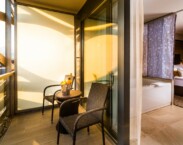 Thermal Exclusive: nejžádanější dvoulůžkové pokoje s možností až 2 přistýlek se nacházejí v přízemí hotelu a mají k dispozici vlastní terasu s posezením a přímým přístupem do bazénů s termální vodou