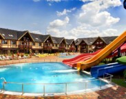 Vodní park: vnitřní a venkovní termální i plavecké bazény, relaxační bazén s tryskami, vzduchovými perličkami, chrliči a dalšími atrakcemi, bazén s vlnobitím, dětský bazén, tobogány.