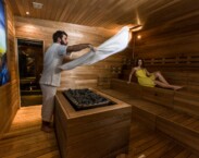 V areálu se dále nachází jeden z největších saunových světů na Slovensku Harmónia s mnoha saunami, včetně velkokapacitního venkovního saunovacího domu. Ubytovaní hosté mají v ceně pobytu vstup do saunového světa na 3hod denně (podle počtu nocí, vstup nelze využít v den odjezdu).