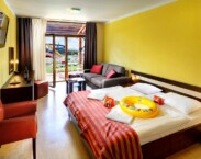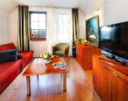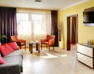 Apartmá: prostorné apartmá se samostatnou ložnicí a obývacím pokojem s až 2 možností přistýlek v obývací části, v některých apartmá možnost další přistýlky pro děti v ložnici